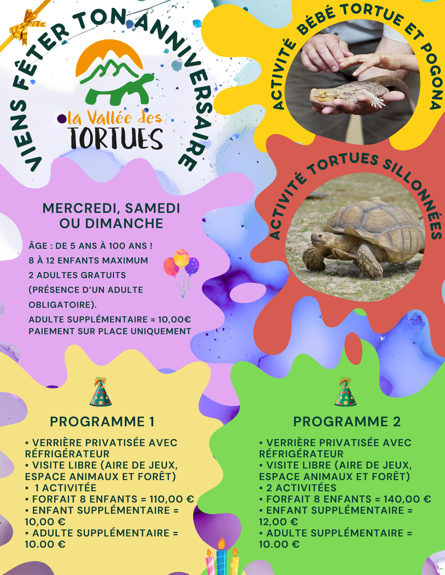 Cette année, surprenez-le en lui offrant une magnifique surprise : un anniversaire à la Vallée des Tortues.